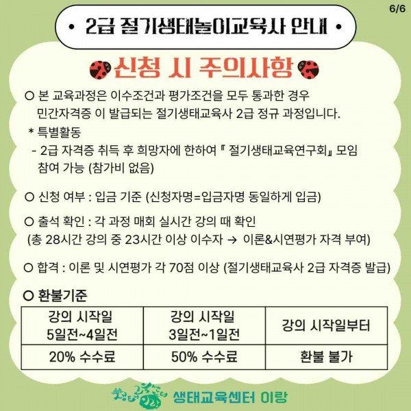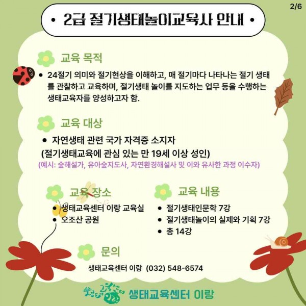 제 2기 절기생태놀이교육사 2급 자격 양성과정 모집